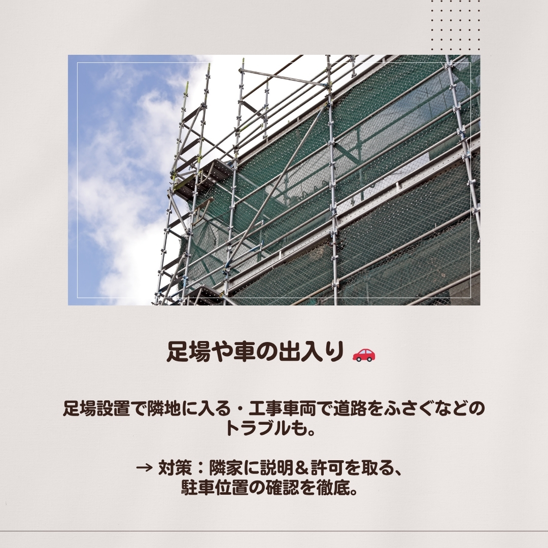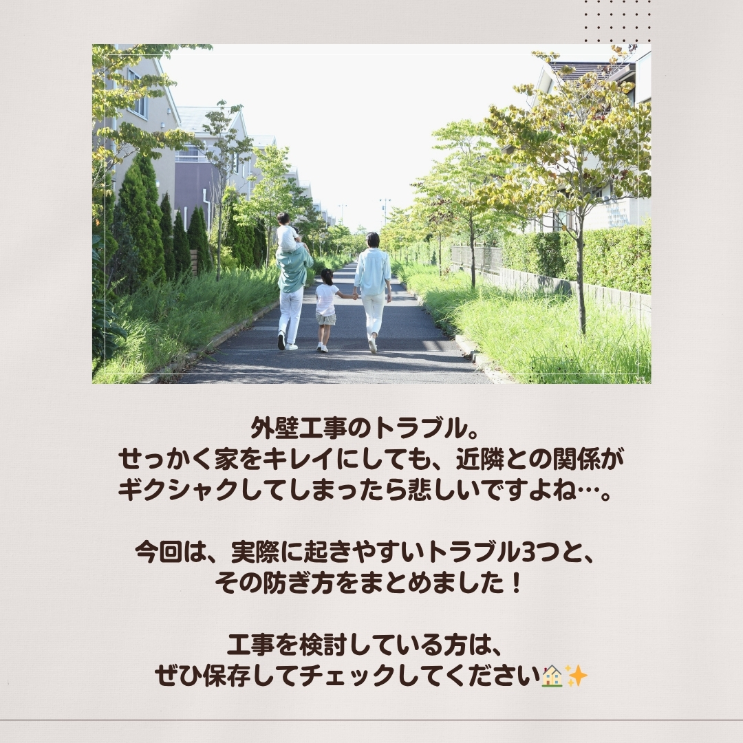 今回は、「🚫 外壁工事で起きやすい近隣トラブル3選」をご紹介します。