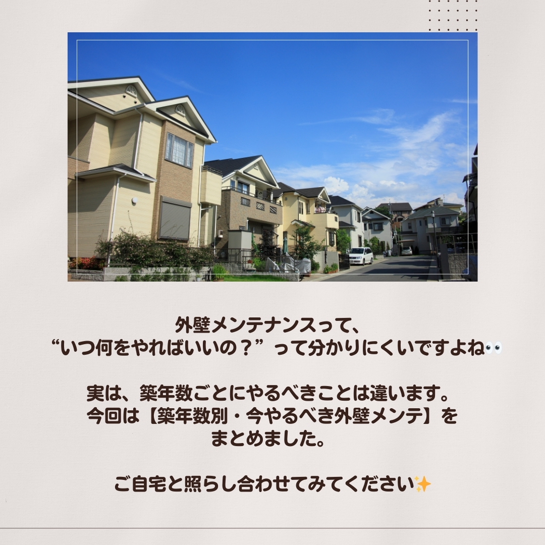 今回は、🏠築年数別「今やるべき外壁メンテナンス」をご紹介します。